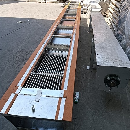 另一部分則依靠清掃器的反向運動把粘在耙齒上的雜物清掃干凈。按水流方向耙齒鏈類同于格柵,在耙齒鏈軸上裝配的耙齒間除可以根據(jù)使用條件進行選擇。當(dāng)耙齒把流體中的固態(tài)是浮物分離后可以保證水流暢通流過,整個工作過程是連續(xù)的,也可以是間歇的。